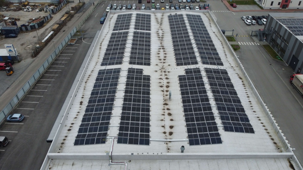 Instalovaný fotovoltaický systém v Českých Budějovicích je tvořený 39 poli fotovoltaických panelů, umístěných na střechách stávajících objektů hal investora. Celkový výkon FVE činí 978,26 kWp je určený pro výrobu el. energie pro vlastní spotřebu. Použito bylo celkem 2386 ks FVP o výkonu 410 Wp.