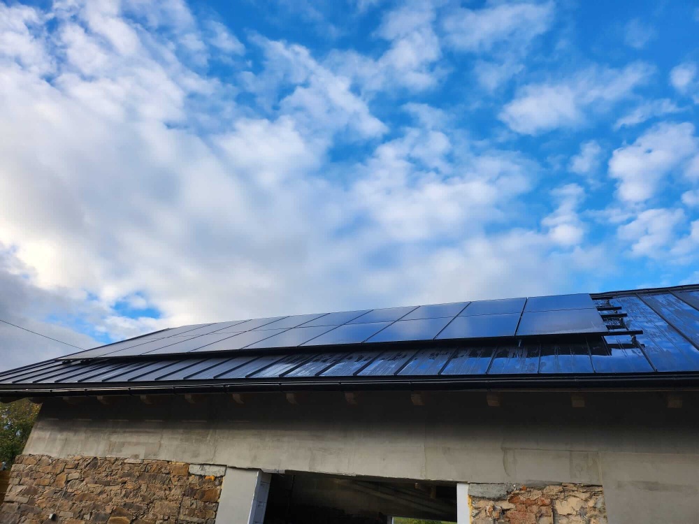 Výkon FVE 6,66kWp, baterie 12,80 kWh, střídač GROWATT SPH8000TL3, FV panely - 18ks Ja SOLAR 370Wp, auto-nabíječka THOR 22AS-P 11kW, Groboost – přetoky z FVE do vody.