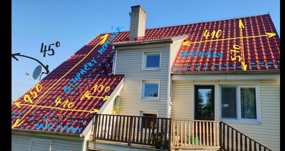 • I na relativně malé ploše střechy s velkým počtem překážek lze realizovat instalaci FVE – nakonec se vešlo krásných 5,5 kWp