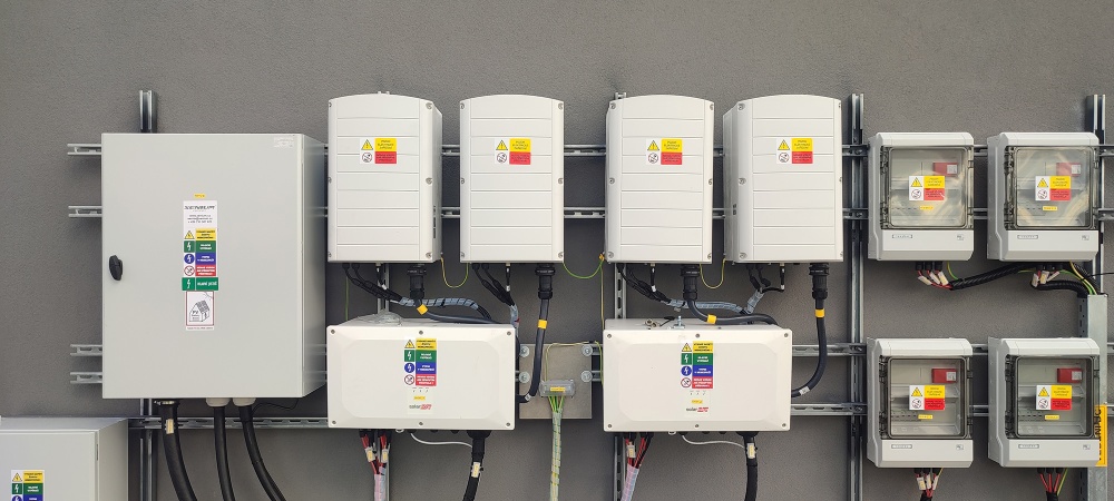 • Instalace fotovoltaického systému o celkovém instalovaném výkonu 131,1 kWp se skládá z 276 ks monokrystalických fotovoltaických panelů, každý o jmenovitém výkonu 475 Wp. FV panely jsou vybaveny výkonovými optimizéry typu SolarEdge S500. Jsou instalovány 2 ks třífázových střídačů se synergickou technologií SolarEdge SE66,6K.