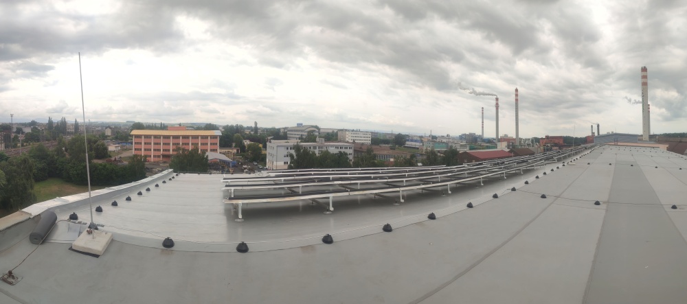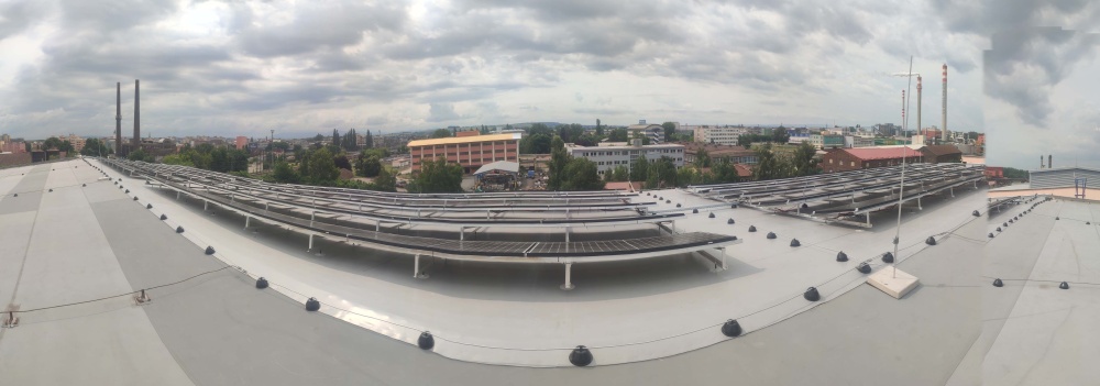 • Celkový výkon FVE je 40,04 kWp s připojením k LDS, 88 ks fotovoltaických panelů o výkonu 455 Wp, střídač Growatt 3x SPH 10 kW + baterie 18 ks 2,56 kWh tj. celkem 46,08 kWh. Hlavní části celého systému jsou FV panely, které jsou připevněny k samonosné konstrukci s orientaci jiho-východ 22° kotvené pod uhlem 10°. Konstrukce na střeše je provedena s ohledem na zajištění mechanické stability zejména proti působení větru.