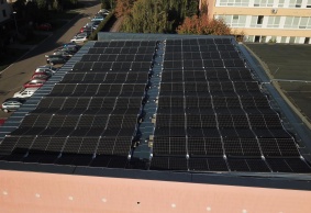 • Fotovoltaického systému o celkovém instalovaném výkonu 62,32 kWp se skládá z 152 ks monokrystalických fotovoltaických panelů, každý o jmenovitém výkonu 410 Wp. FV panely jsou vybaveny výkonovými optimizéry typu SolarEdge P950.