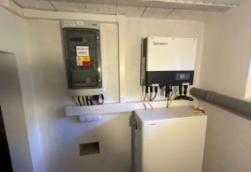 • FVE 9,26 kWp, střídač SPH 10000 TL3, bateriové úložiště 12,8 kWp, konstrukce samozátěž Jih.