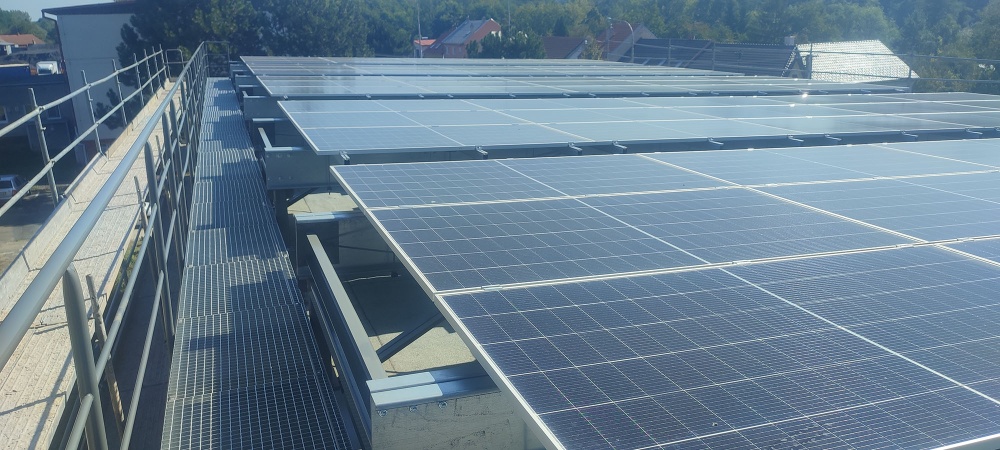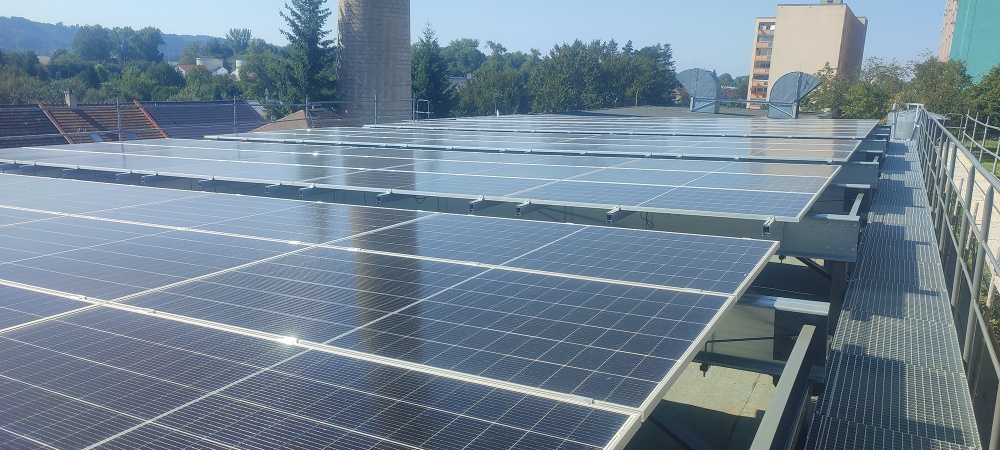 • Na ploše fotovoltaická elektrárny je instalováno celkem 75 kusů panelů o výkonu 650Wp. Celkov instalovaný výkon je 48,750 kWp. Fotovoltaické moduly jsou připevněny modulovými příchytkami k hliníkovým profilovaným nosníkům, které jsou namontovány na konstrukci určené pro tyto panely.