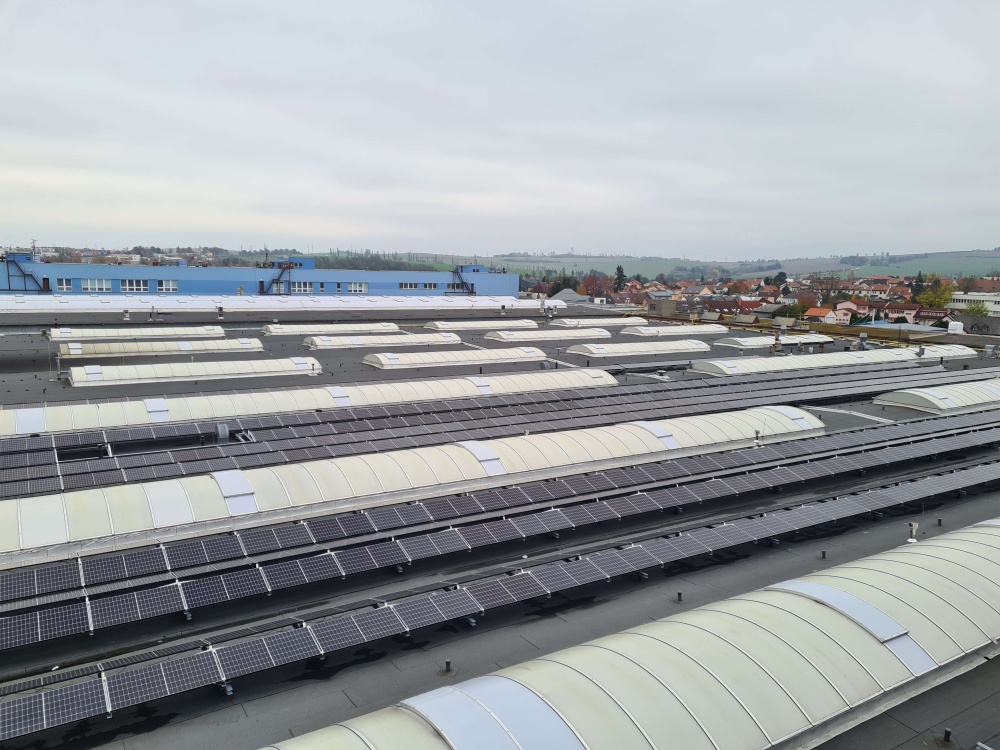 • Výrobna byla instalována primáně za účelem snížení energetické náročnosti objektu. Orientace panelů na východ a západ zajistí postupnou výrobu v průběhu celého dne. odběrové špičky areálu, byl k FVE instalován i bateriový systém.