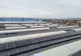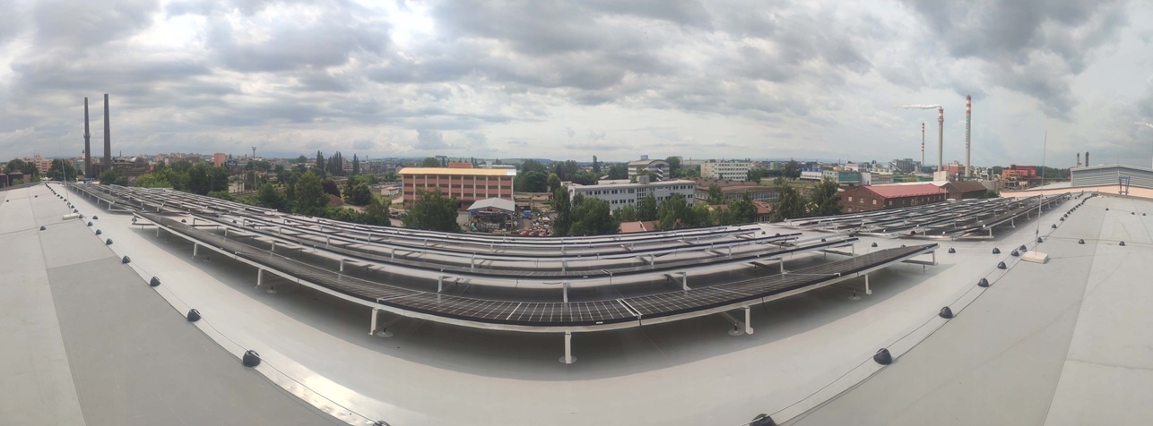 • Fotovoltaická elektrárna o celkovém výkonu 300 kWp, z důvodu nevyhovující statiky umístěna na speciální roznášecí konstrukci. Panely jsou osazeny výkonovými optimizéry, jež maximalizují výrobu elektrické energie a zajišťují nízké napětí v případě nouzového vypnutí.