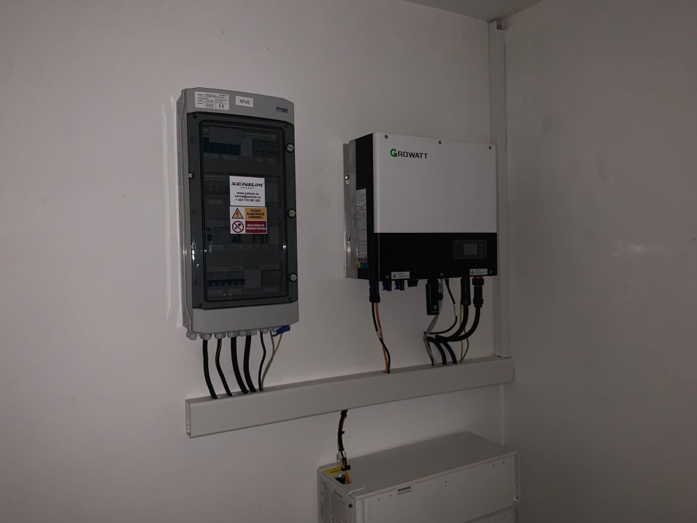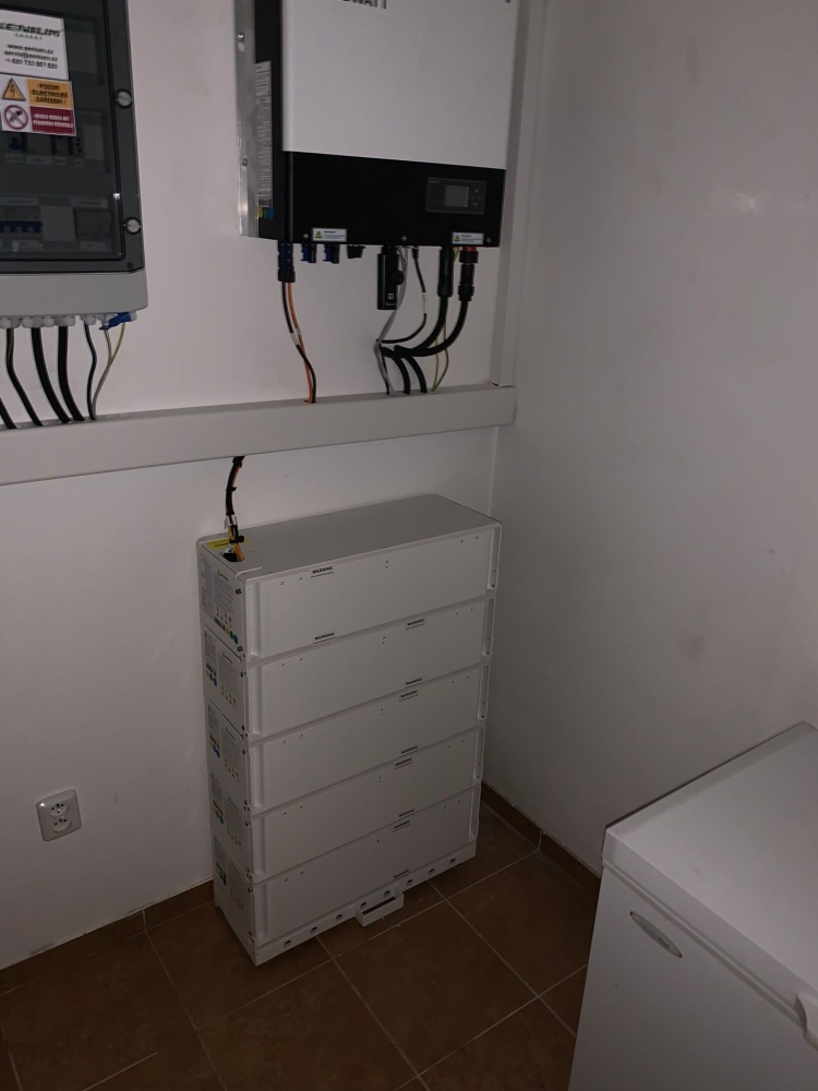 Výkon FVE 8,19 kWp, baterie 10,24 kWh, střídač GROWATT SPH10000TL3, FV panely -18 ks Ja SOLAR 455 Wp, optimizéry TIGO, Growatt Groboost – přetoky do vody