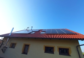 Jednoduchá, standartní instalace FVE na šikmou střechu s orientací na JIH s požadavkem na využití přetoků do vody