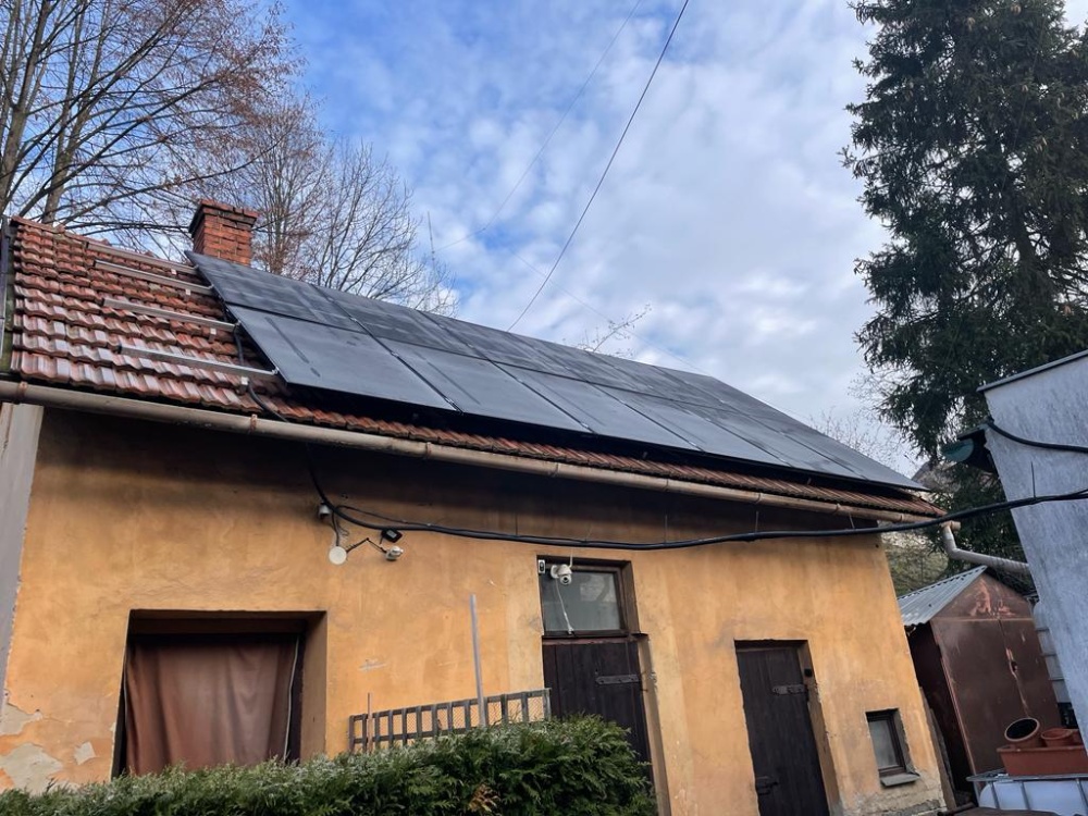 Podle přání zákazníka na maximální výkon FVE byla provedena montáž FV panelů na 2 samostatné střechy (RD a garáž) – propojení stringů a umístění technologie bylo realizováno v garáži