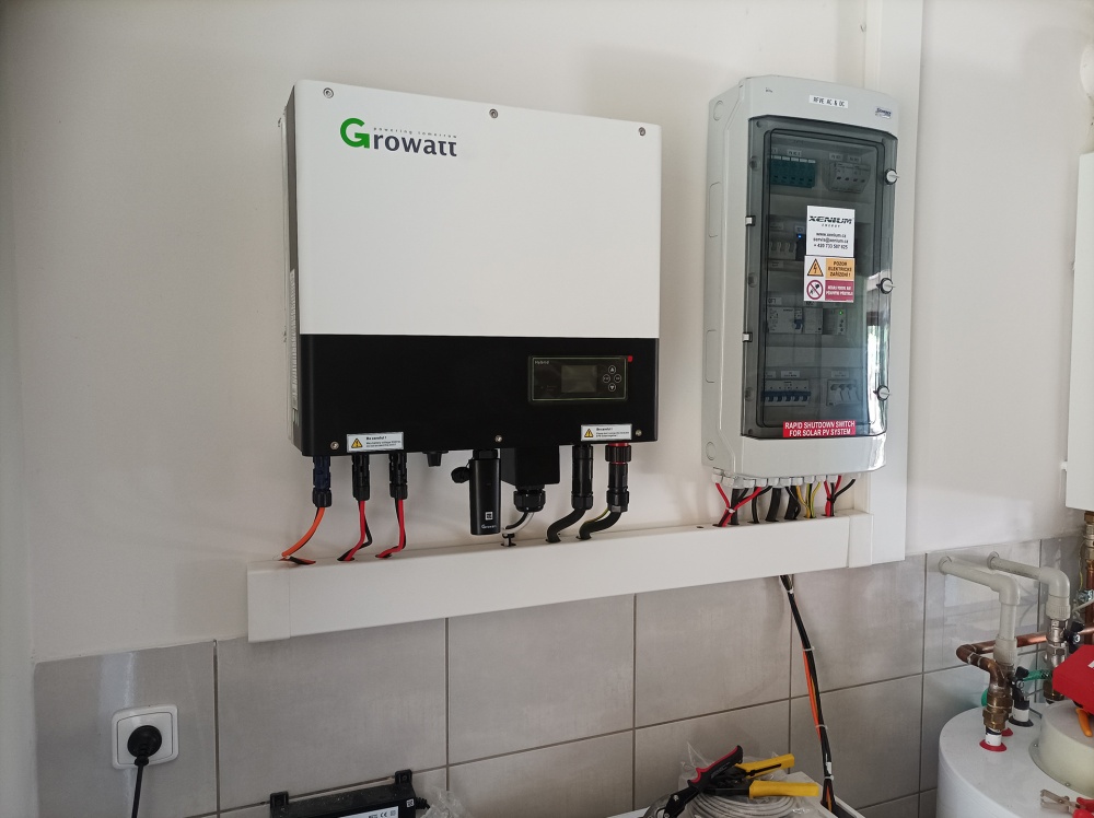 • Výkon FVE 8,14kWp, baterie 10,24kWh, střídač GROWATT SPH8000TL3, FV panely - 22ks Ja SOLAR 370Wp, optimizéry TIGO, autonabíječka THOR 22AS-P