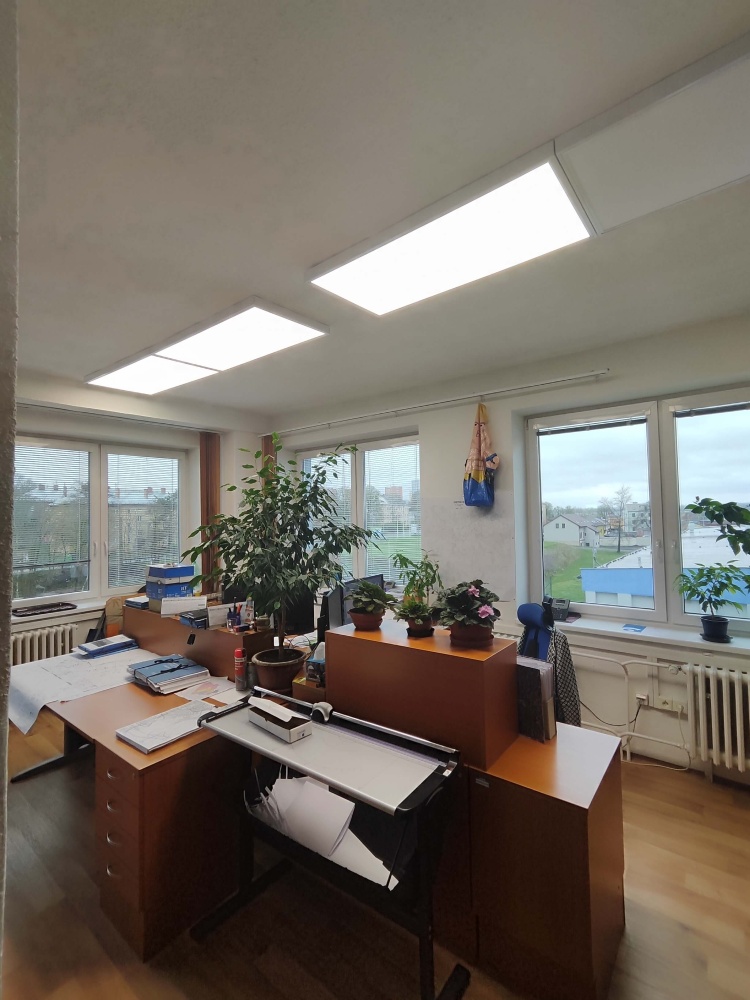 • Zadáním investora bylo výměny starého osvětlení za nové moderní úsporné led osvětlení, které zvýší zrakovou pohodu jednotlivých pracovišt v administrativní budově.