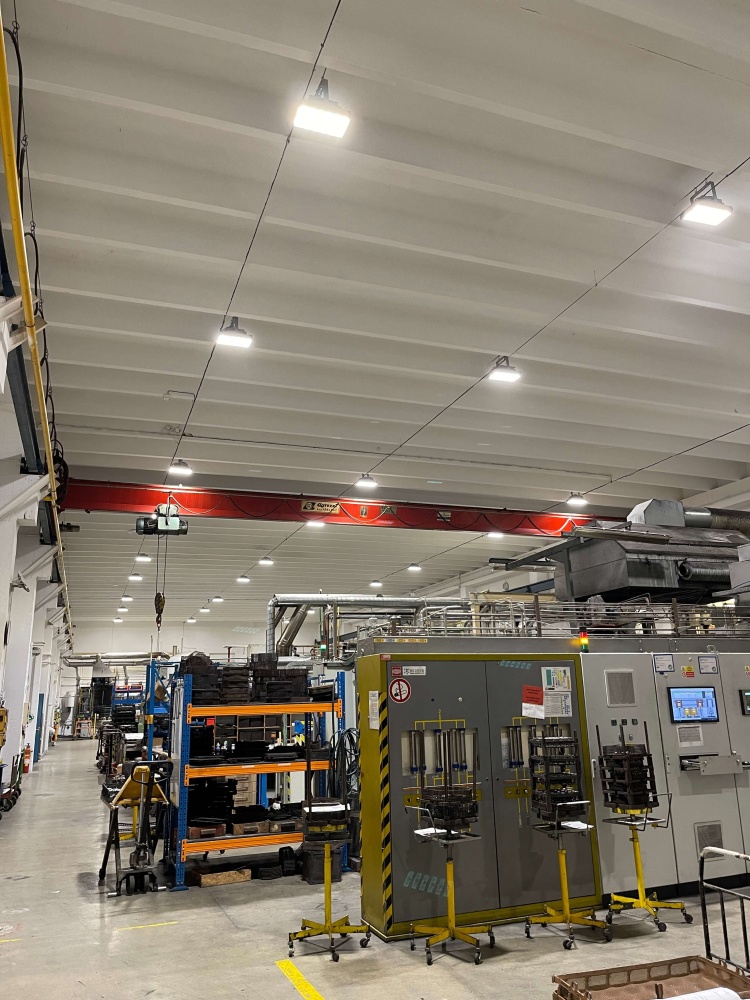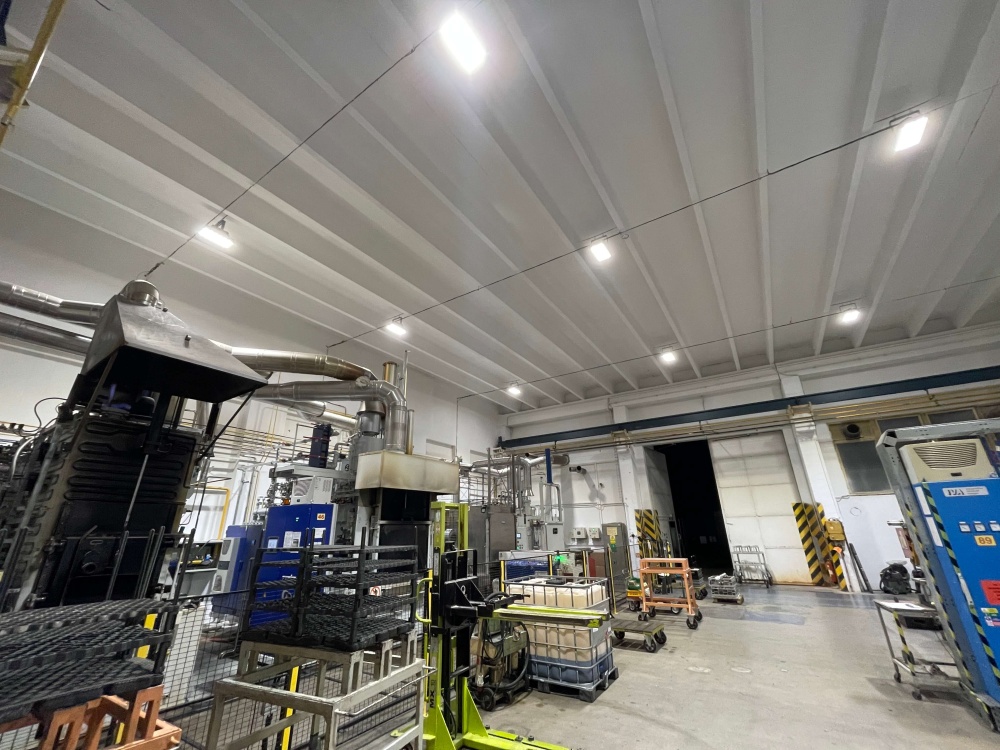 • Investor na základě vyřízení dotace realizoval výměnu starého a z části už nefunkčního osvětlení ve výrobních a administrativních prostorech za nové led úsporné osvětlení. Nové instalované led osvětlení splňuje vyšší požadavky na osvětlenost jednotlivých pracovních úseků tak, aby byla splněna zvýšená zraková pohoda zaměstnanců.