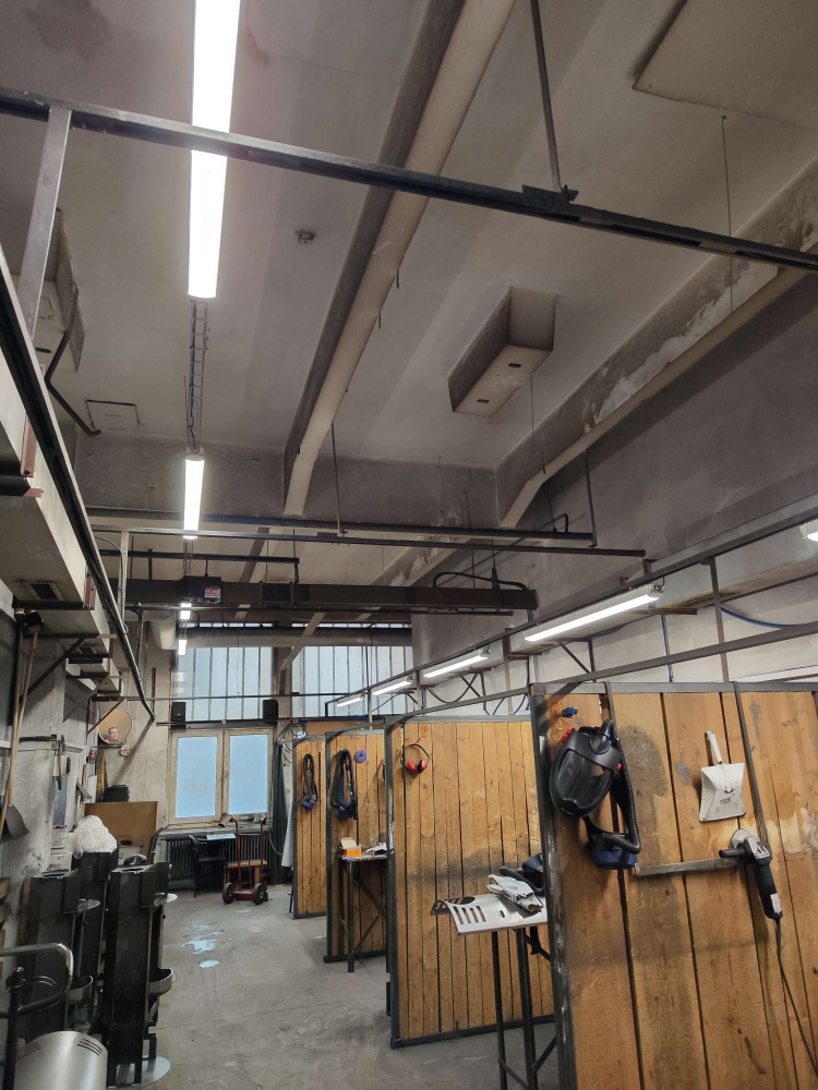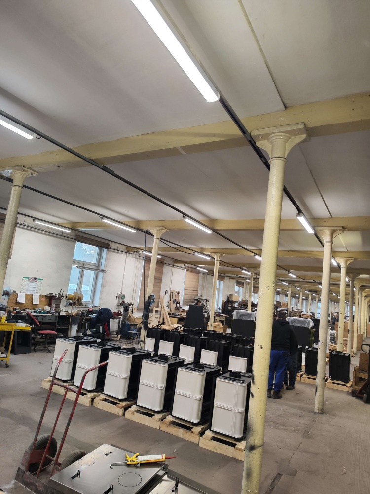 Místo instalace - administrativní, výrobní a skladovací prostory. Použité osvětlení - Lineár E150, FLAT E 600x 600, FLAT E 1200 x 600