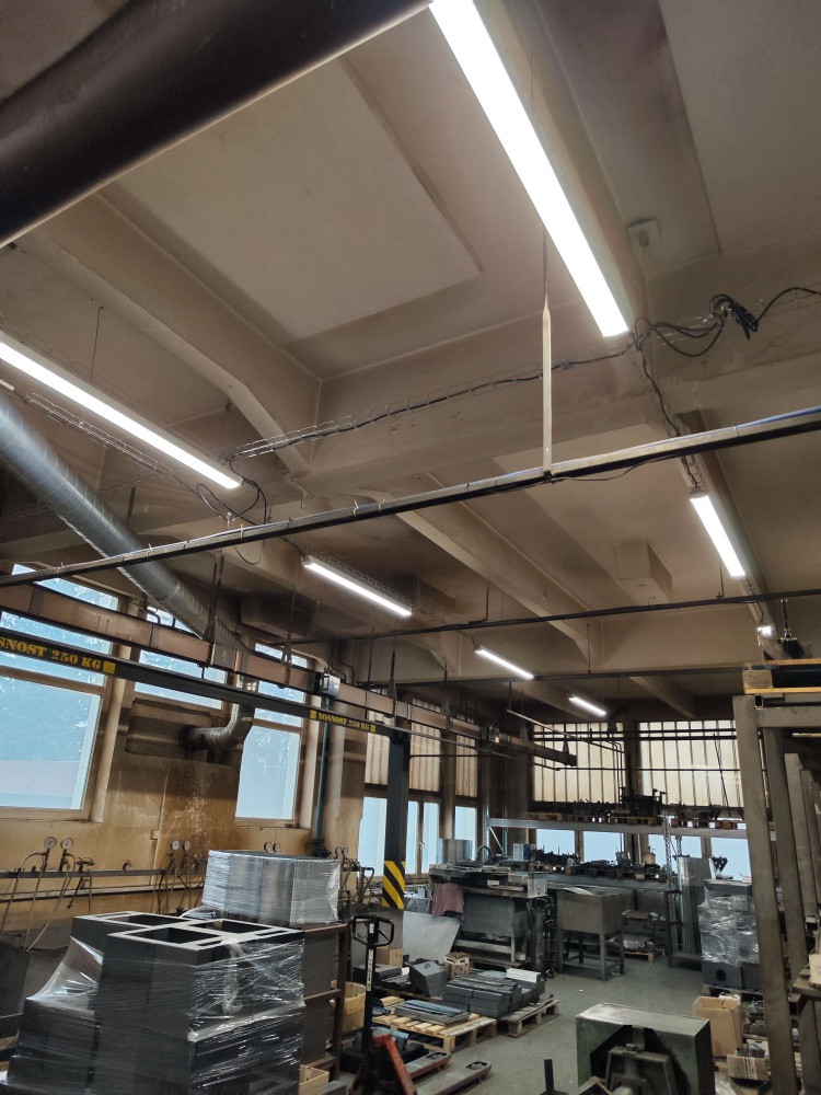 V rámci realizavce usporného projektu podpořeného dotací, došlo k výměně starého chátrajícího osvětlení za nové moderní led osvětlení, které splňuje veškeré nové normy pro osvětlování pracovišť. Jednalo se o administrativní, skladovací a část výrobní prostory. Realizace zakázky trvala 3 měcíce. Součastně s výměnou osvětlovacích soustav docházelo také k výměně veškeré kabeláže a modernizaci všech světelných rozvaděčů.