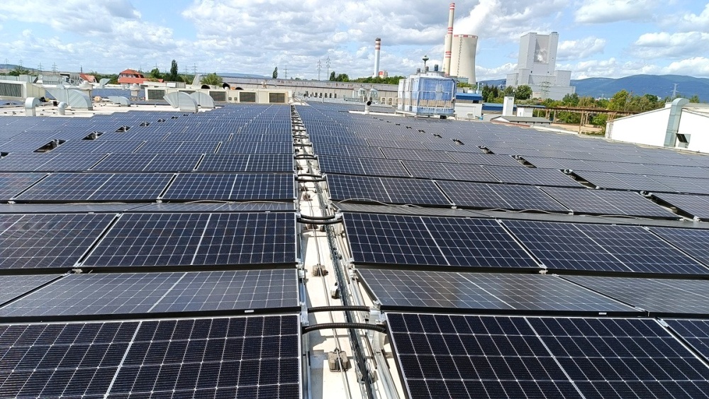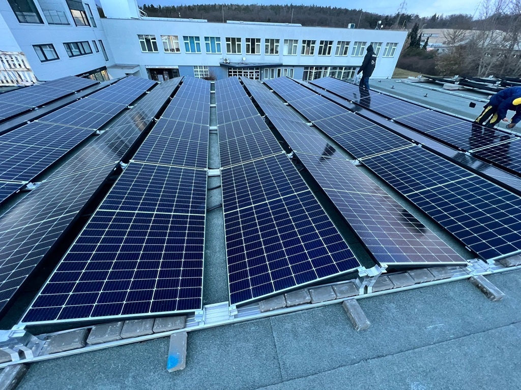 Na střeše jsme instalovali 1 750 panelů s optimizéry a 6 střídačů SolarEdge, doplněných o DC/AC rozvodnice a napojení do přípojného bodu. Zajistili jsme také přeložení hromosvodů a sladili rozmístění panelů s technologiemi klimatizací.