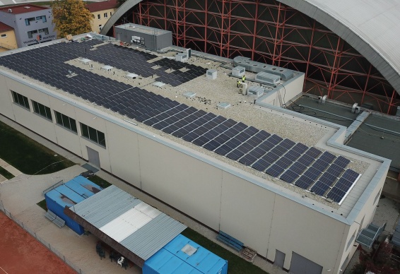 • Instalace fotovoltaického systému o celkovém instalovaném výkonu 131,1 kWp se skládá z 276 ks monokrystalických fotovoltaických panelů, každý o jmenovitém výkonu 475 Wp. FV panely jsou vybaveny výkonovými optimizéry typu SolarEdge S500. Jsou instalovány 2 ks třífázových střídačů se synergickou technologií SolarEdge SE66,6K.