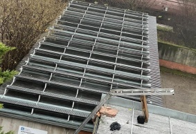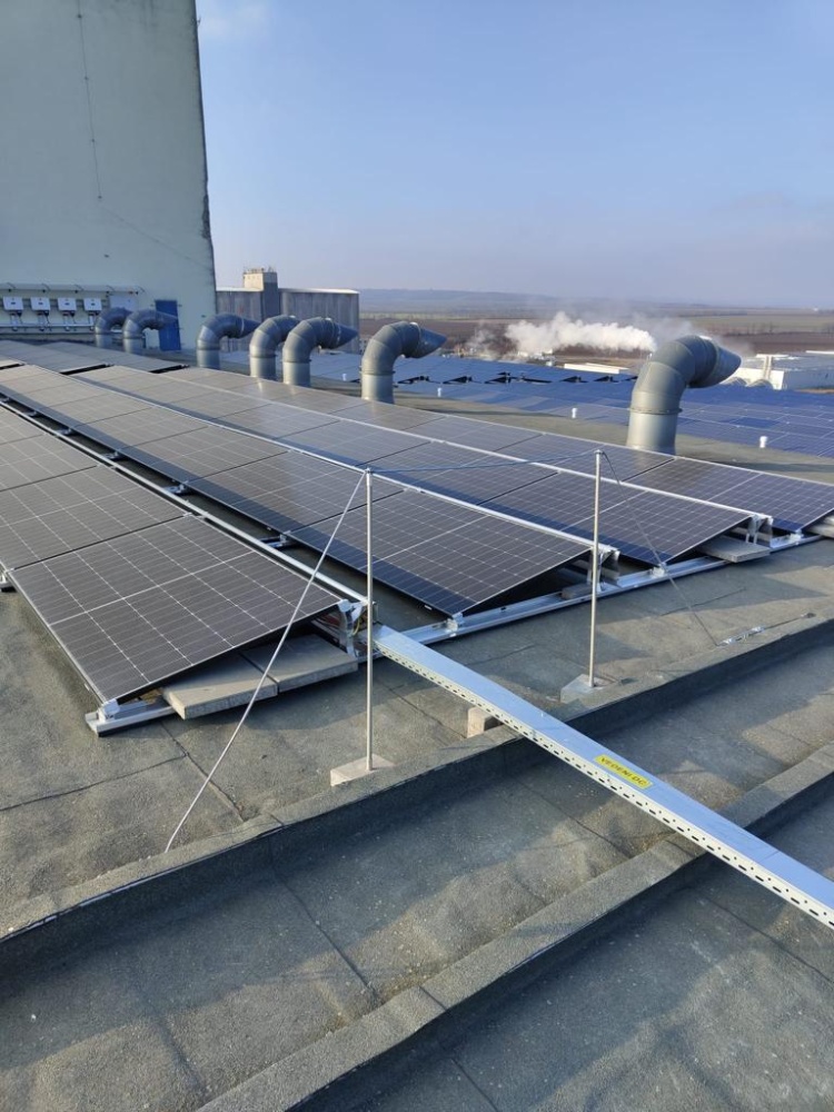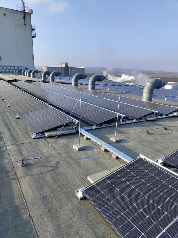 • Místo realizace FVE : Hodonice. Výkon 445 kWp, celkový počet střech 10, celkem 957 ks panelů JinkoSolar 465Wp, měniče a optimizéry Huawei, konstrukce Novotegra samozátěž s kotvením - JIH,  realizace byla provedena vč. úpravy na hromosvodové jímací soustavě, dle požadavků klienta.
