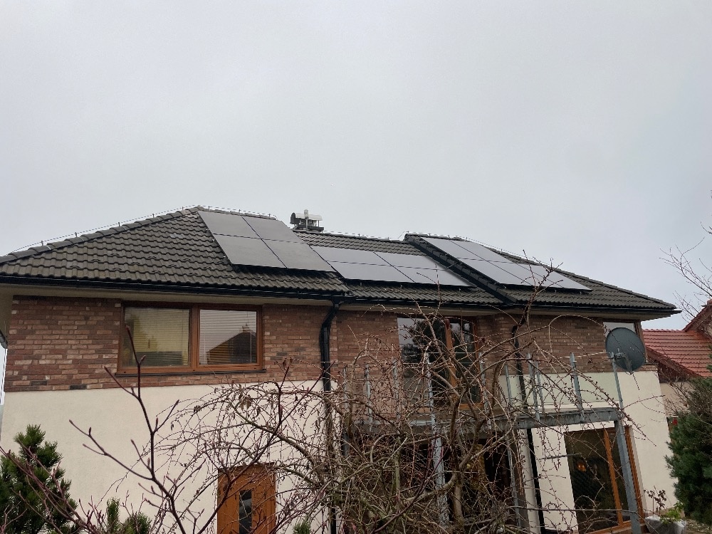 • Přání zákazníka bylo maximální využití fotovoltaické elektrárny pro svůj rodinný dům. Istalace proběhla na šikmou střechu kde jedna část je klasickým způsobem kotvená směr západ a druhá část je přizdvednutá směr jih tak aby zákazník měl pokrytí i v zimním období, doplněno o optimizéry, posledním dílkem skládačky je instalce auto-nabíječky pro budoucí elektromobil.
