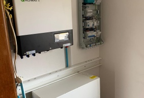 • Výkon FVE 8,19 kWp, baterie 10,24 kWh, střídač GROWATT SPH10000TL3, FV panely -18 ks Ja SOLAR 455 Wp, Growatt Groboost – přetoky do vody