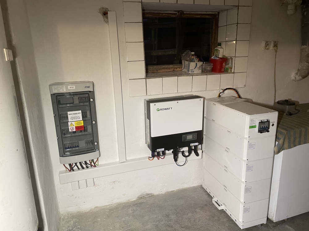 Výkon FVE 9,56 kWp, baterie 10,24 kWh, střídač GROWATT SPH10000TL3, FV panely -21 ks Ja SOLAR 455 Wp