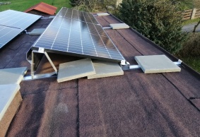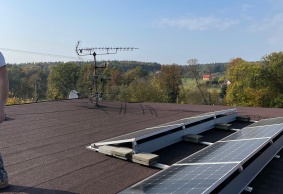 Podle přání zákazníka na maximální výkon FVE byla provedena montáž FV panelů na 2 samostatné střechy (RD a garáž) – propojení stringů a umístění technologie bylo realizováno v RD