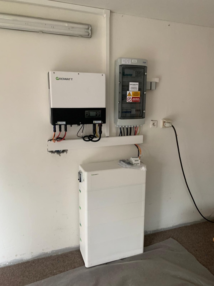 Výkon FVE 9,56 kWp, baterie 10,24 kWh, střídač GROWATT SPH10000TL3, FV panely -21 ks Ja SOLAR 455 Wp, Growatt Groboost – přetoky do vody