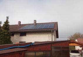 Podle přání zákazníka na maximální výkon FVE byla provedena montáž FV panelů na 2 samostatné střechy (RD a garáž) – propojení stringů a umístění technologie bylo realizováno v garáži