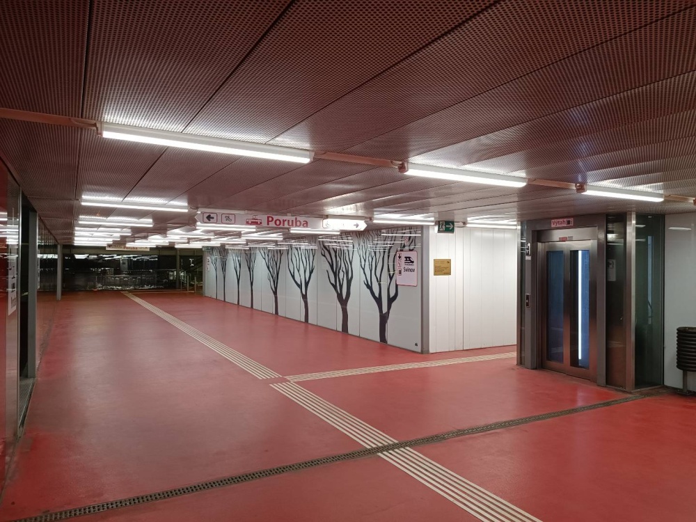 • Na základě požadavků investora došlo k postupně ve třech etapách k výměně starého osvětlení. A to na autobusových zastávkách, v prostorech eskalátorů, spojovacích chotbách a autobusových zastávkách pod Svinovskými mosty. Výměnou osvětlení za nové led moderní úsporné osvětlení došlo k výrazné úspoře finančních nákladů, jelikož nové osvětlovací soustavy jsou navíc řízeny čidlem osvitu tak aby se s nimi nakládalo úsporně.