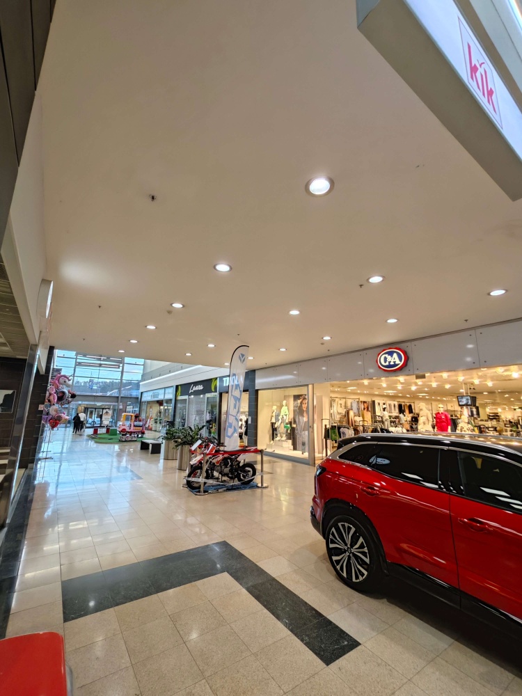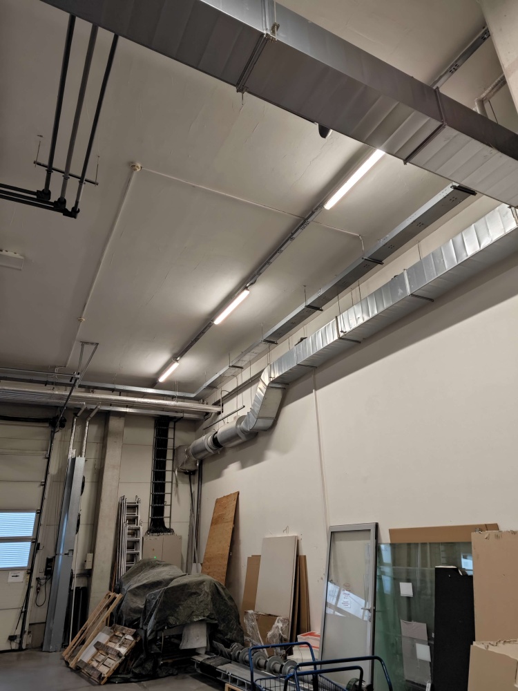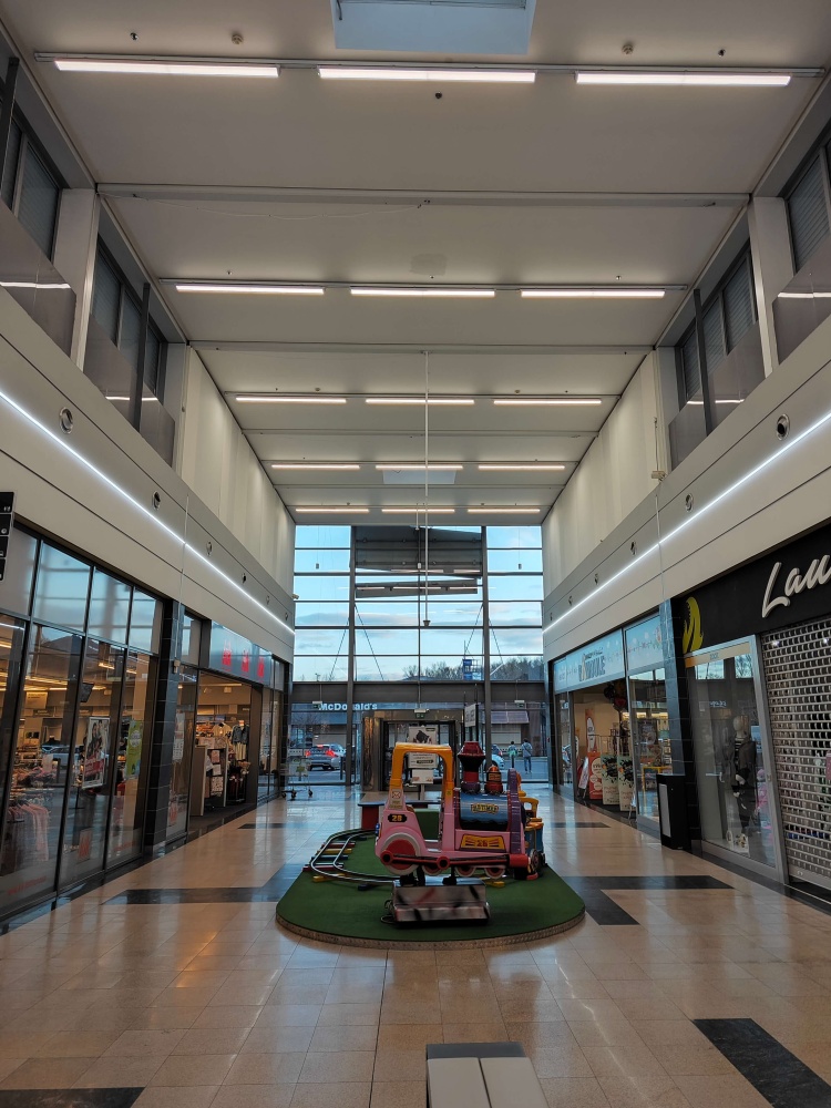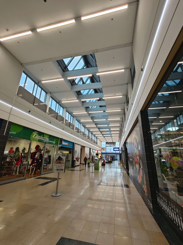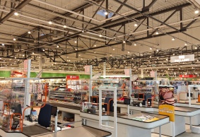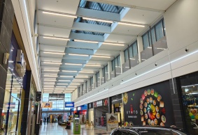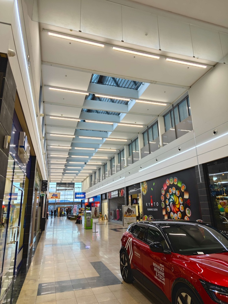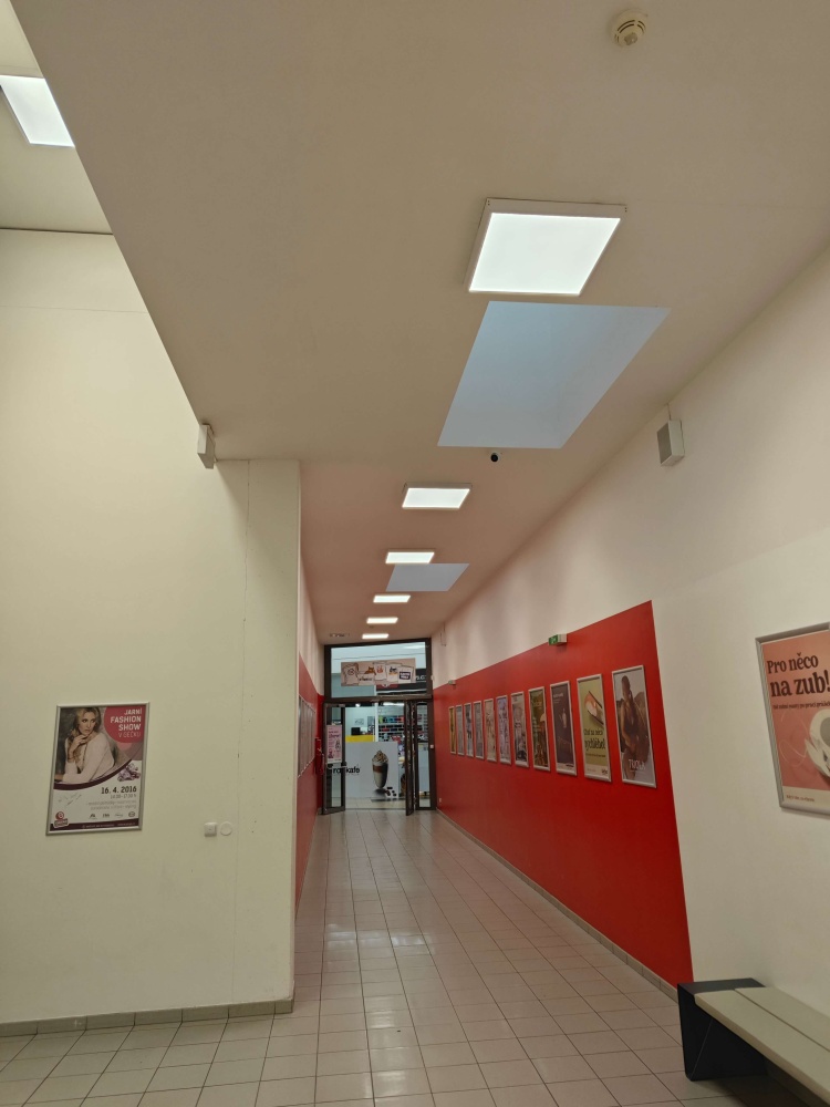• Místo instalace - zázemí a pasáž nákupního centra. Použité osvětlení - LINEAR E120 30W-840, ORBIT 31 120W-840-60D, BUBU 32 100W-740-BAT, FLAT 0606 36W-840-120D, FLAT E 1203 36W-840-120D