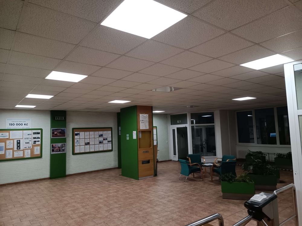 • Na zakladě výběrového řízení investora byla realizována výměna hlavního osvětlení I. až X. haly. Došlo k výměně starých výbojkových svítidel za nové moderní led osvětlení, doplněné také o nouzové led osvětlení.