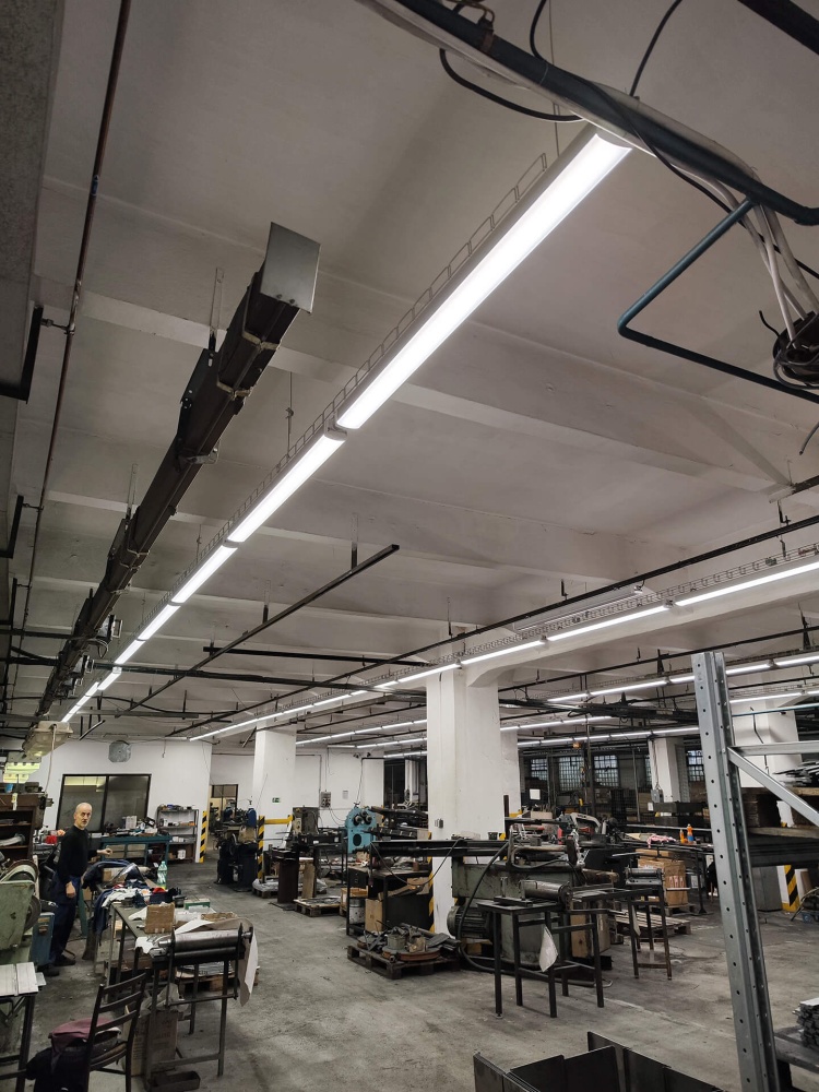 Místo instalace - administrativní, výrobní a skladovací prostory. Použité osvětlení - Lineár E150, FLAT E 600x 600, FLAT E 1200 x 600